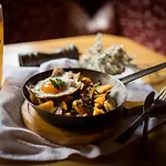 Jeden Morgen wird im Hotel ein einfaches Frühstück serviert. Die Gäste vom Sepp Tux können verschiedene Speisen in der Terrassen- Bar probieren. Der Barbereich verfügt über Terrassen-.